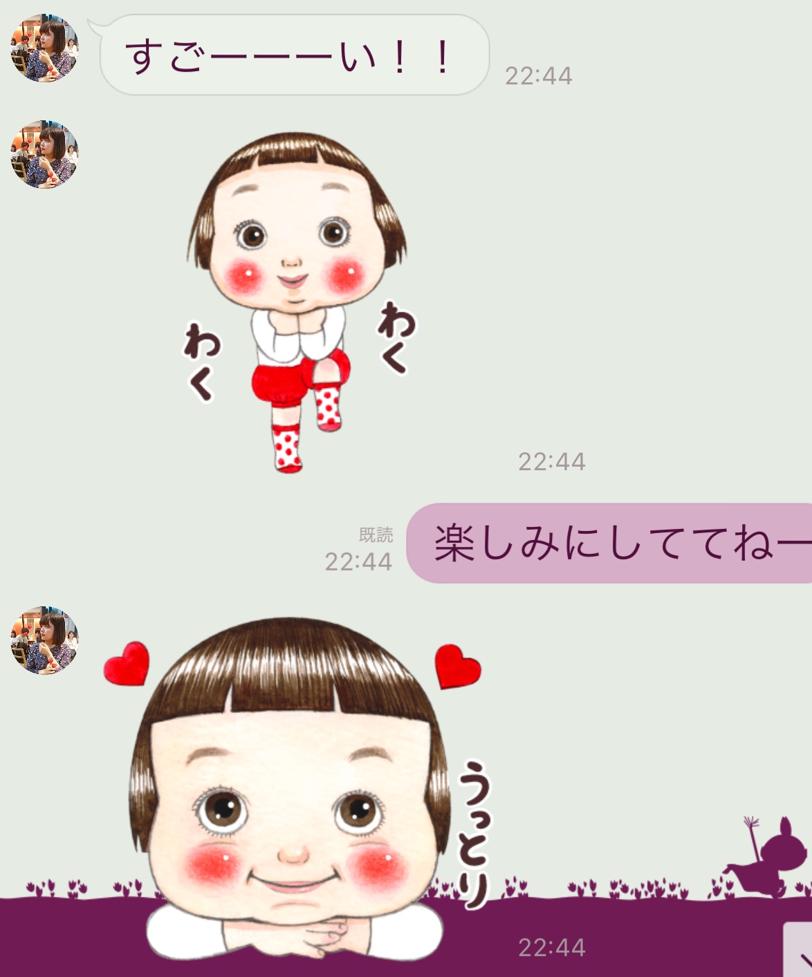 写真を撮って送る、すぐに返信スタンプがくる。