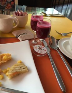 チェックアウトの手続きをして、それからお迎えの車が来るまでの30分、レストランで軽く朝食をとる。