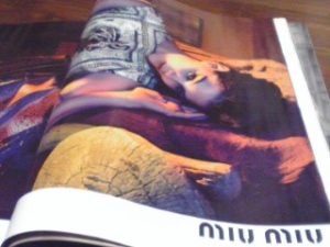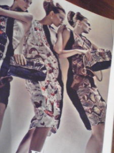 このところのファッション雑誌でよく目にするプラダの広告、プラダのワンピース。