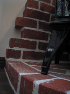かちっとしたのは嫌だったので、わざと崩してあります。そしてレンガとレンガの間の白いモルタル部分はわざとはみ出したかんじで仕上げてもらいました。